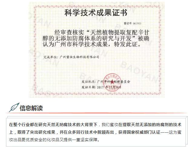 喜訊|蜜妝生物“無添加防腐體系”領(lǐng)先技術(shù)獲權(quán)威認證,為化妝品安全保駕護航!
